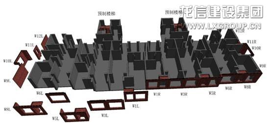 在100米以下公共建筑中采用預(yù)制裝配整體式框架剪力墻結(jié)構(gòu)體系,柱、梁、疊合板、樓梯、陽臺(tái)預(yù)制裝配,剪力墻現(xiàn)澆;適用市中心場地狹小、環(huán)保要求高、工期要求緊的項(xiàng)目。