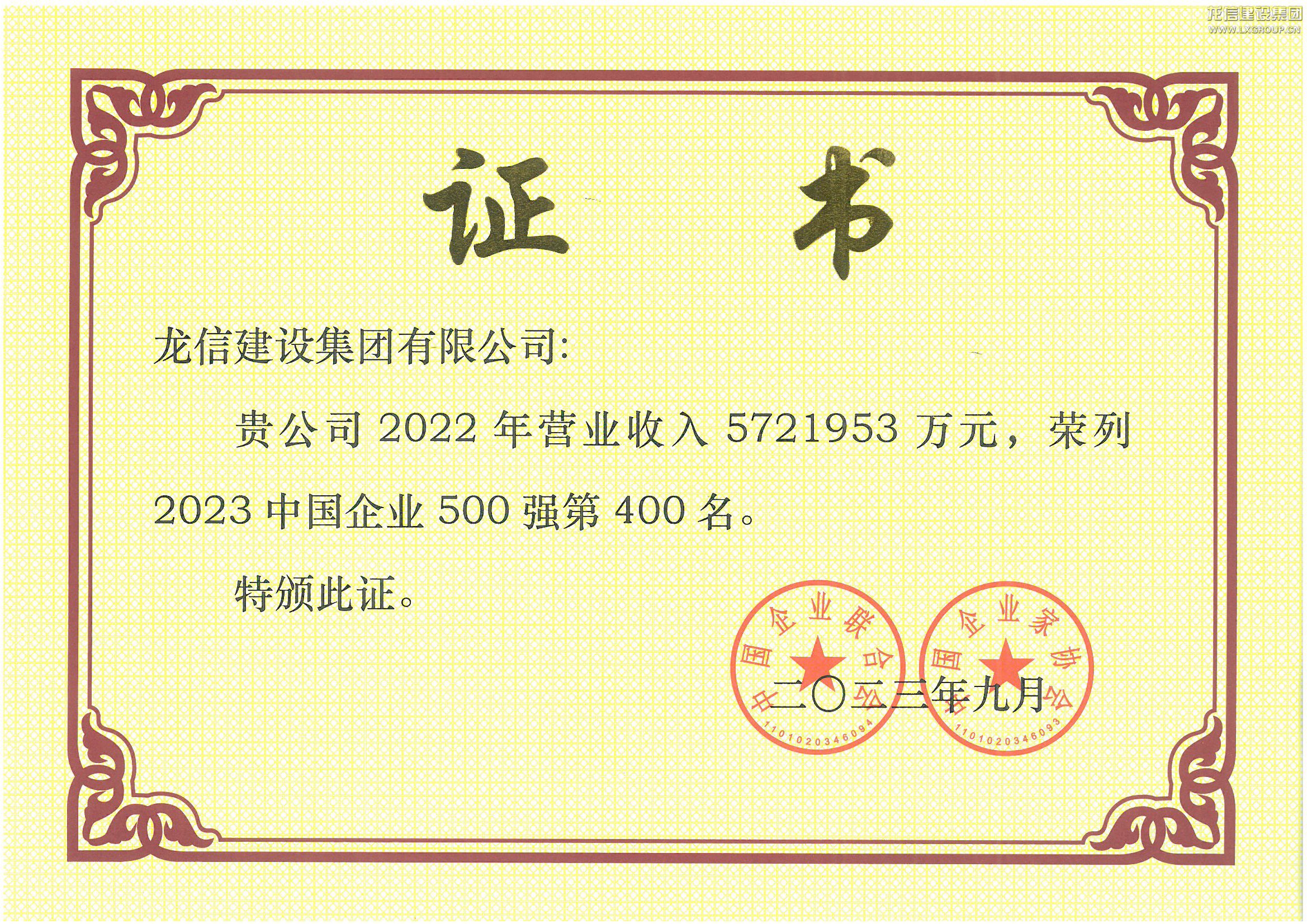 2023中國(guó)企業(yè)500強(qiáng)第400名