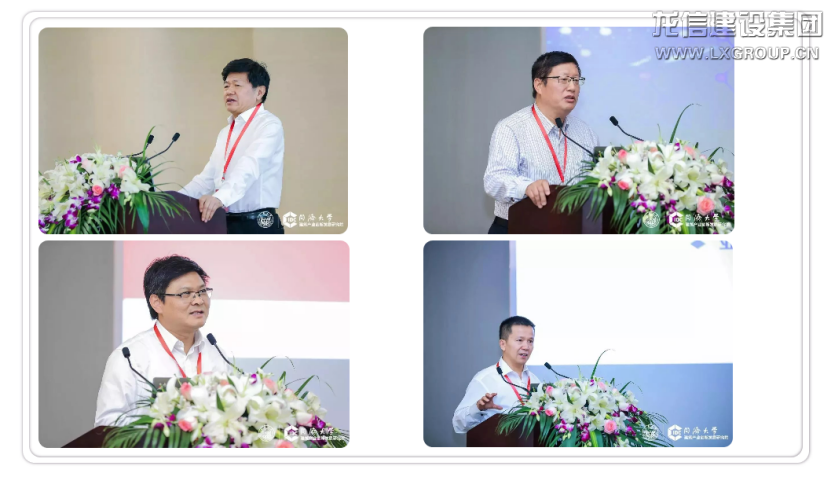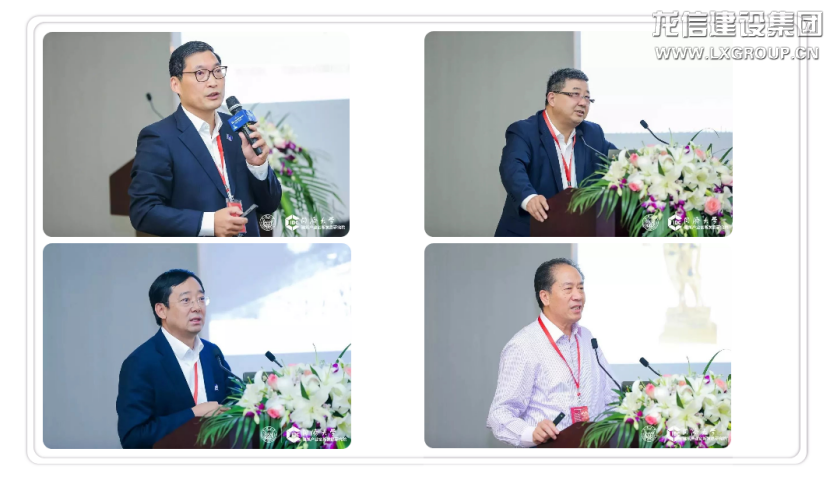 左起:華東建筑集團(tuán)股份有限公司總裁張樺先生,申銀萬(wàn)國(guó)證券研究所首席市場(chǎng)專家桂浩明先生,中鐵四局集團(tuán)有限公司總經(jīng)理王傳霖先生,南通四建集團(tuán)有限公司終身名譽(yù)董事長(zhǎng)耿裕華先生