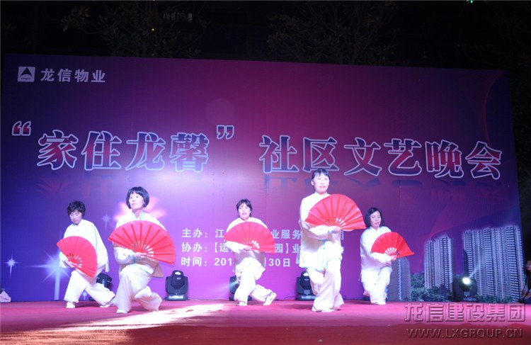 4月30日晚,由江蘇龍信物業(yè)服務(wù)有限公司主辦,【運杰龍馨園】業(yè)主委員會協(xié)辦的家住龍馨社區(qū)文藝晚會在運杰龍馨園中心廣場舉行。本次晚會,特邀專業(yè)演員和部分業(yè)主共同打造,精">